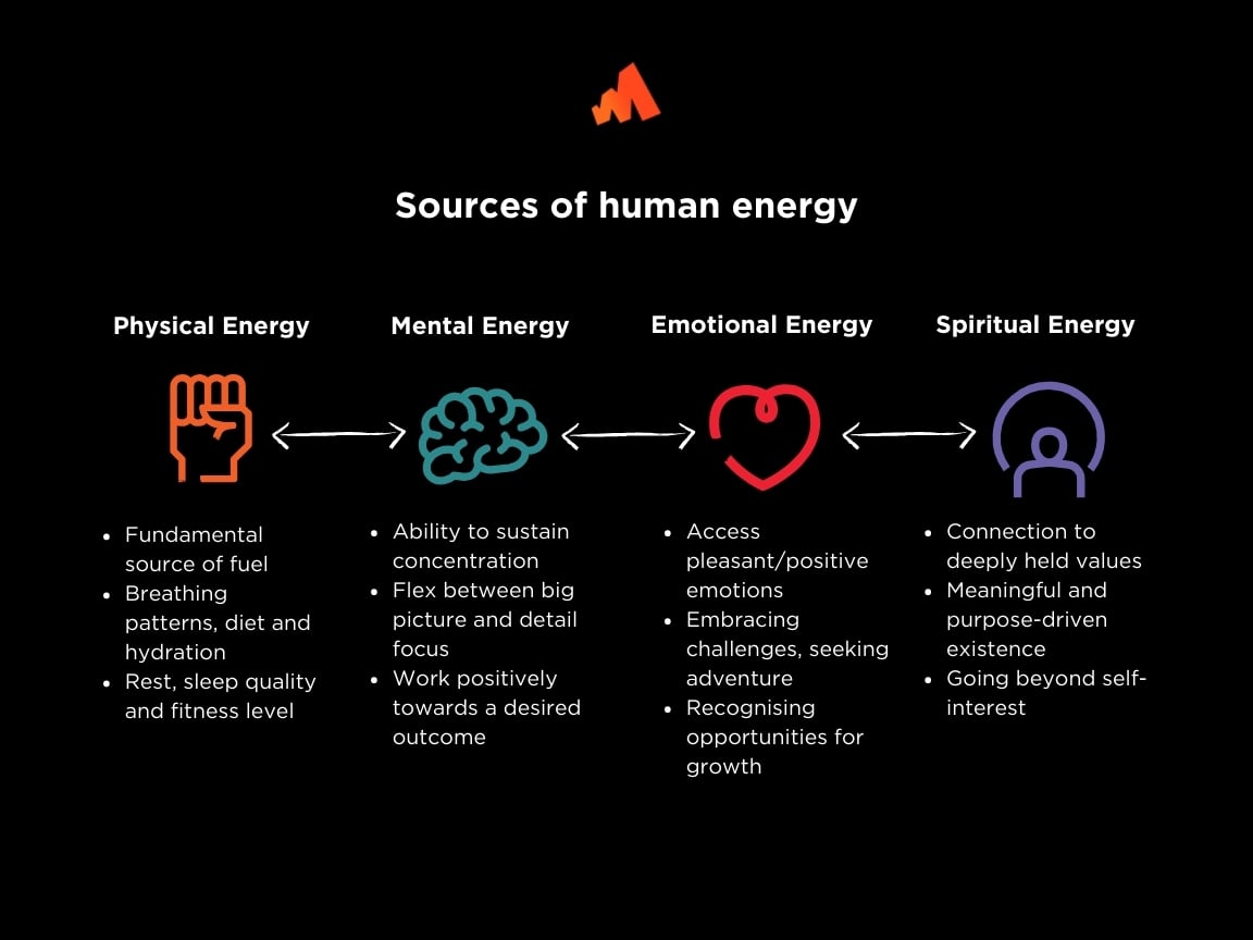 As our physical, emotional, and mental energies are very much related their interplay can lead to friction if left unmanaged, such as increased fatigue from lack of sleep hindering concentration. So assessing our physical energy levels is a great starting point!
